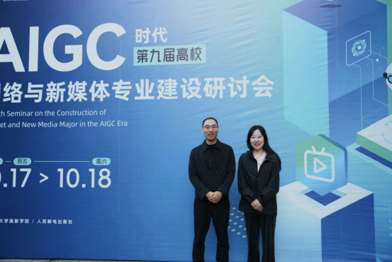 本次会议旨在应对AIGC技术浪潮,共同探讨网络与新媒体专业的人才培养与建设路径,为培养引领未来的传媒人才凝聚智慧。主论坛上,来自学界与业界的专家围绕传媒教育的前沿趋势作专题报告。随后,两位老师分别参加了“教学教研与学术发表”和“国际教育与产教融合”两个分论坛。会议期间,两位教师向与会专家介绍了公司传媒专业建设方面的成果与经验,就AIGC背景下课程改革、国际合作以及产教融合创新等议题与同兄弟院校代表进行了深入探讨。