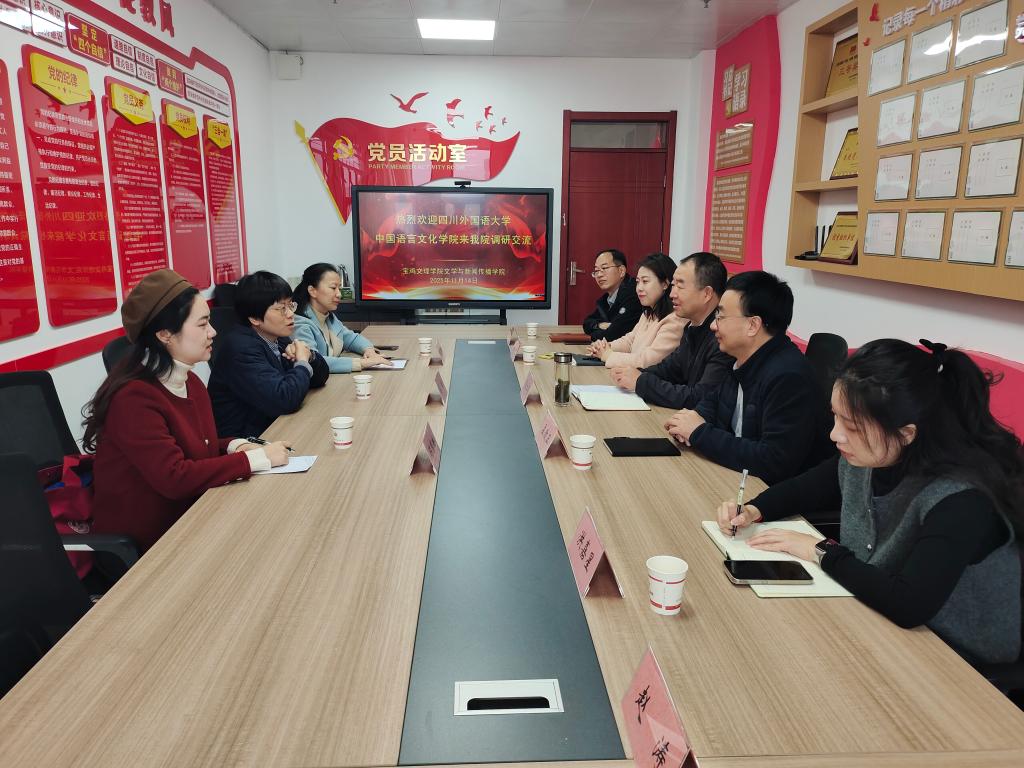 11月14日上午,四川外国语大学中国语言文化英国365集团官网党总支书记薛红一行三人来公司交流座谈。座谈会在高新校区博文楼702室举行,党委书记张红亮主持座谈会。