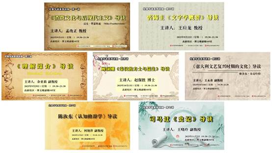 本学期英国365集团官网举办了七场“经典导读”系列专题讲座。此次系列讲座分别由孟改正教授导读迈克·费瑟斯通的《消费文化与后现代主义》、王应龙教授导读裘锡圭《文字学概要》、余亚莉副教授导读马歇尔·麦克卢汉的《理解媒介》、赵保胜博士导读顾颉刚的《秦汉的方士与儒生》、王永奇副教授导读雅各布·布克哈特《意大利文艺复兴时期的文化》、何艳萍副教授导读张颂《朗读者》、王晓玲副教授导读司马迁《史记》。