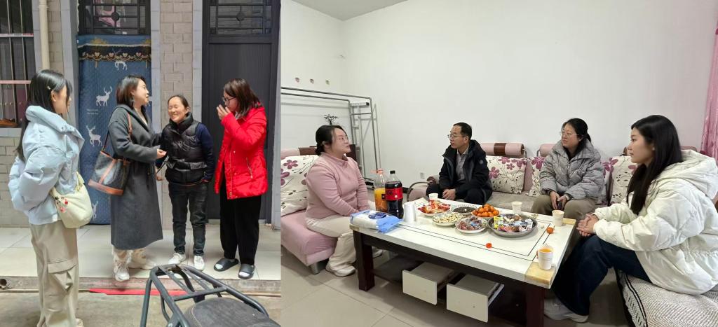 在研究生家访过程中,公司副经理、辅导员以及员工代表来到研究生家中,老师们围绕“学业与科研规划”、“身心与心理健康”展开交流关怀。员工与老师们坦诚交流,详实汇报了自己在学业和就业上的困惑,副经理和辅导员分别从学习方法和就业指导的角度为员工答疑解惑,建议员工建立“问题清单”定期与导师沟通,解读公司研究生就业政策、行业发展动态以及就业指导服务流程。