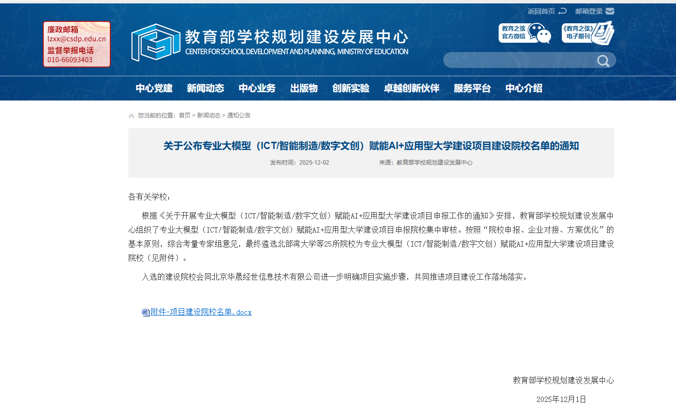 近日,教育部公司规划建设发展中心发布《关于公布专业大模型(ICT/智能制造/数字文创)赋能AI+应用型大学建设项目建设院校名单的通知》,公司成功入选专业大模型(数字文创)赋能AI+应用型大学建设项目院校。