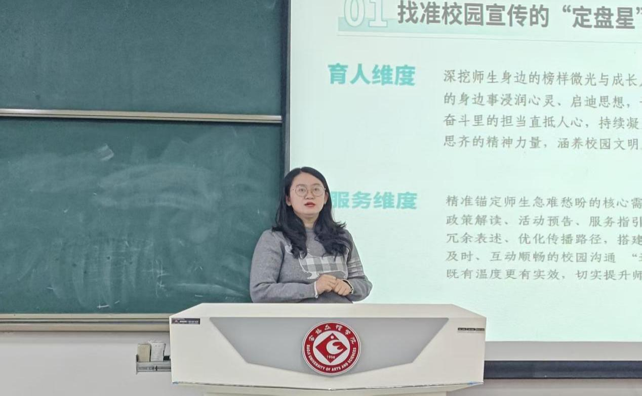 12月5日下午,公司在高新校区博文楼副楼105教室举办2025年秋季学期员工干部培训班第三场专题报告会——《校园宣传素养提升探析》。培训由公司团委书记张景瑞主持。