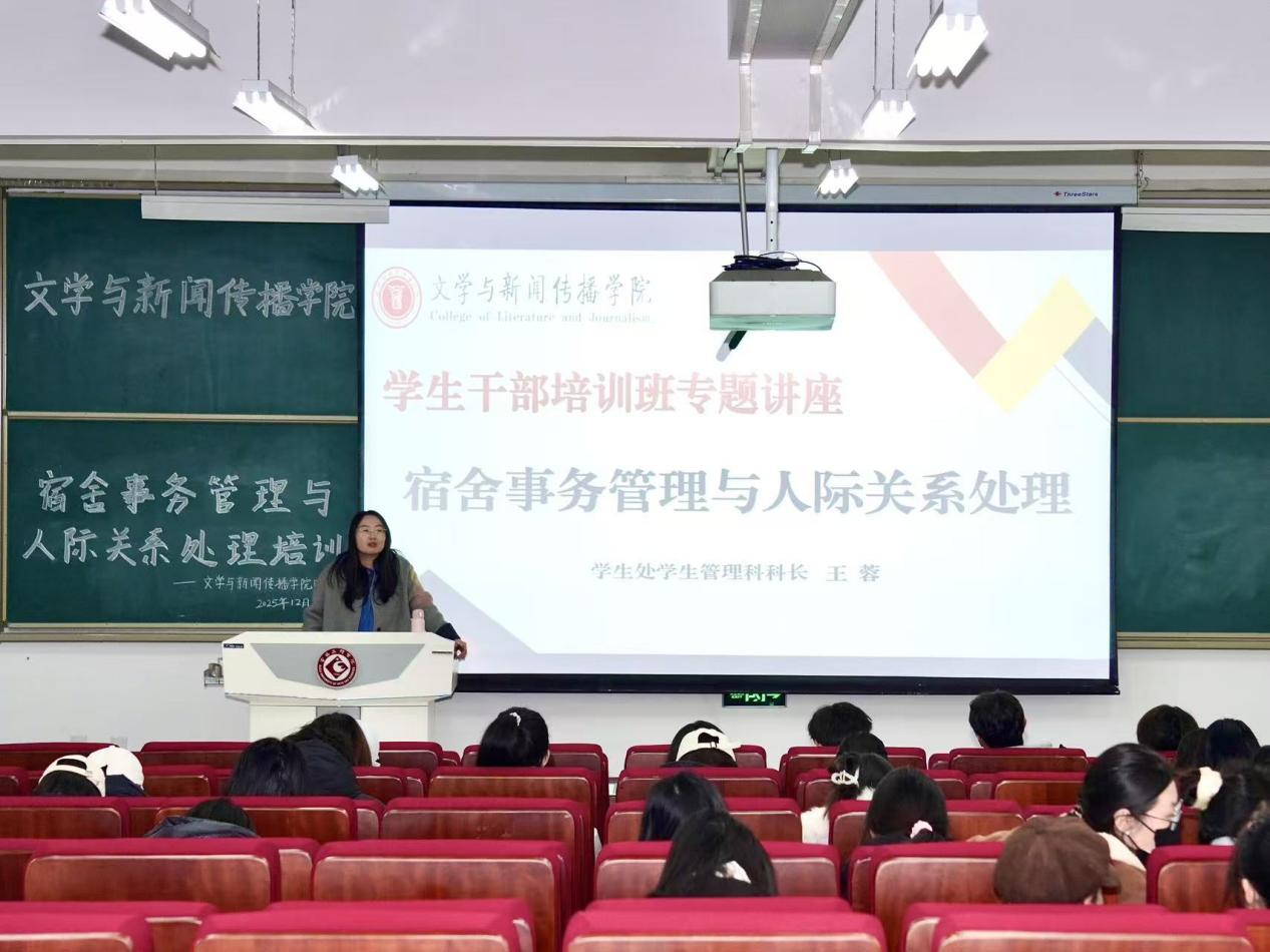 12月9日下午,公司在高新校区博文楼副楼105教室开展宿舍事务管理与人际关系处理培训会。公司部分宿舍舍长参加报告,报告由公司团委书记张景瑞主持。