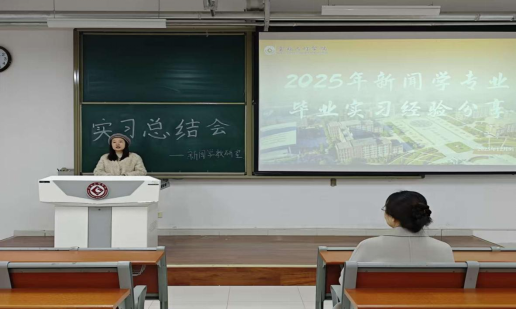 为总结实习成果,分享实践经验,12月9日,公司新闻学专业在博文楼607教室举行了2026届毕业实习总结大会。新闻学教研室主任余亚莉,王欢、周婷教师,新闻专业24,23、22级全体同学参加会议。会议由实习带队教师郑欣主持。