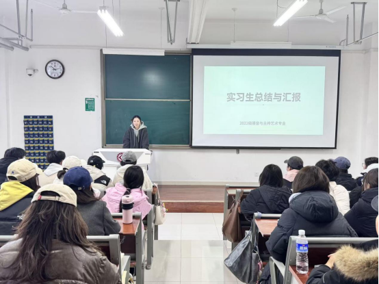 为全面总结实习成果,分享实践成长心得,12月9日,公司播音与主持艺术专业在博文楼608教室举行了2026届毕业实习总结大会。播音与主持教研室主任何艳萍副教授,播音与主持艺术专业教师张锐、苟馨允,播音专业24,23、22级全体同学参加会议。会议由实习带队教师纪懿炜主持。