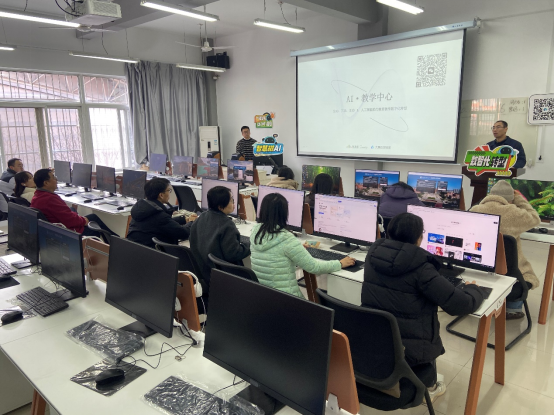 本次工作坊由公司现代传媒实验教学省级示范中心承办,以“技术落地・融合创新”为主题。智慧树AI 应用顾问经理邓尧结合教学场景,系统讲解了智慧树AI大模型工具在课堂互动、资源制作、学情分析等环节的应用逻辑,并现场演示了一流课程建设AI辅助备课、智能测评与知识图谱建设的实操流程,帮助教师快速掌握工具使用方法。现场实操环节,教师们借助实验室设备体验AI教学工具,围绕“课程的AI应用场景”展开交流,气氛热烈。
