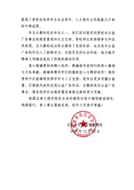 大赛启动以来,公司英国365集团官网精心组织,邀请宝鸡市市场监管局进行业务指导,师生创作平面类、视频类作品71件参加全省竞赛。最终荣获各类奖项7项。宝鸡市市场监管局发来贺信,肯定了公司长期以来坚持立德树人的根本任务,为繁荣我市公益广告事业、服务经济社会高质量发展做出的新贡献。