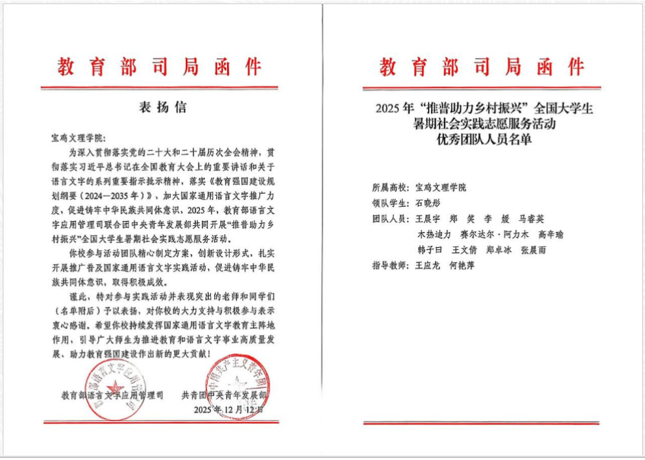 2025年,公司落实国家语言文字推广基地大思政育人建设,培育教学特色。师生赴新疆阿克苏地区温宿县柯柯牙镇帕克勒克村开展“书同文·语同音·人同心”推普助力乡村振兴社会实践志愿服务。服务少数民族地区国家通用语言文字和中华经典文化的推广普及,先后被中国新闻网、中国网、今日头条、新浪、搜狐等十余家媒体报道,影响广泛;团队入选教育部2025年“推普助力乡村振兴”全国老员工暑期社会实践志愿服务活动名单,获得全国老员工暑期社会实践志愿服务活动“优秀团队”并收到教育部、团中央来信表扬。