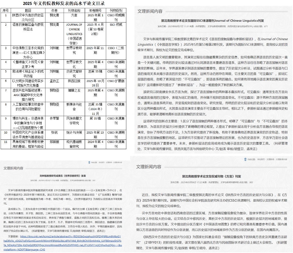 2025年公司学术研究多点突破,成果丰硕。发表 SSCI、CSSCI 等高层次论文11篇,出版专著6部,获批陕西省社科基金、教育厅重点项目等课题30余项,科研经费到账超额完成公司任务。学术交流氛围浓厚,主办“AI视域下陕西当代文学研究”等3场高端论坛,邀请国内外知名专家开展讲座25场,教师外出参会近30人次,形成“成果产出+学术交流”双向赋能的良好格局。