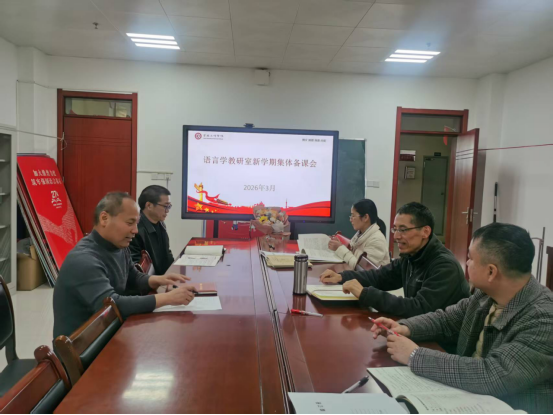 2026年3月1日,语言学教研室在博文楼1403召开2025-2026学年度第二学期新学期集体备课会,主要围绕语言类课程教学、实践教学以及教学研究三个方面展开深入研讨。会议由教研室主任王应龙教授主持。